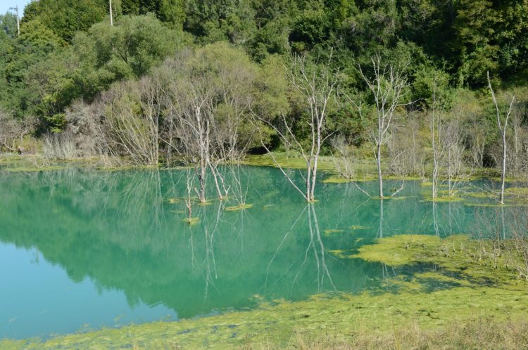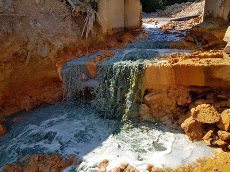 Priveliștea este un spectacol, dar spectacolul e unul trist. Nu e vorba de ape curate, cristaline de munte ci deșeuri toxice. Arborii din apropierea lacului sunt goi și uscați iar reflexia lor în apele de smarald formează o imagine zguduitoare.