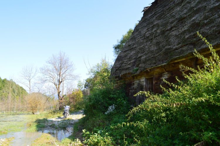 Rulând pe marginea lacului descoperi case abandonate, unele dintre ele gata să fie înghițite de apele acide.
