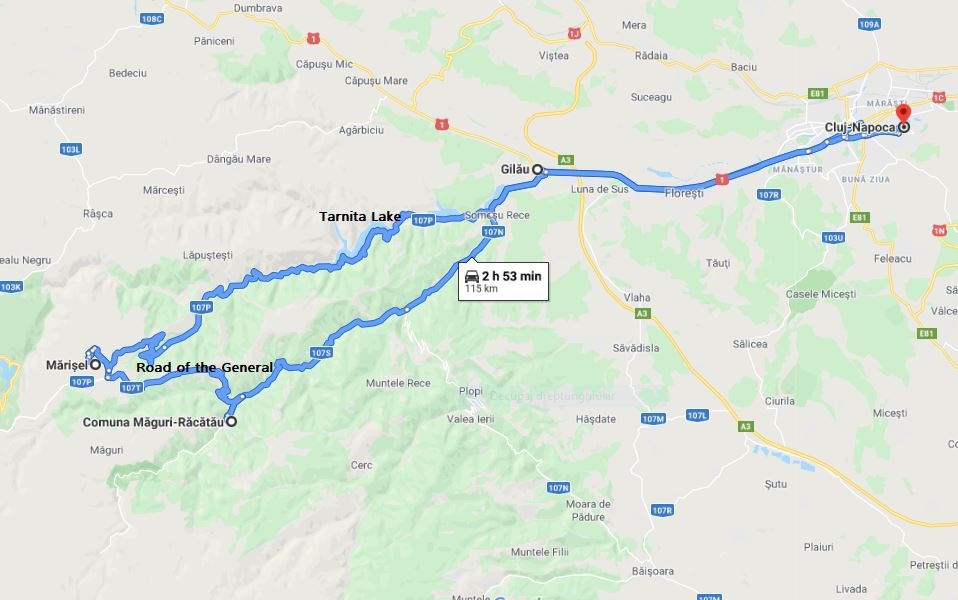 You can start your journey in Cluj Napoca riding towards Somesului Rece Valley. Once you reach Maguri Racatau Village a narrow asphalt road opens to the right.